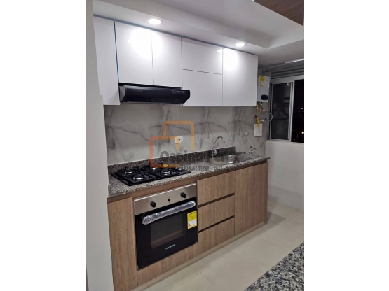 El apartamento consta de sala comedor con lámparas de techo, balcón con ventanales dobles que proporcionan iluminación y frescura, cocina integral con extractor de olores y horno, zona de oficios, baño social, dos habitaciones con clóset, sala de tv, la habitación principal con baño privado.