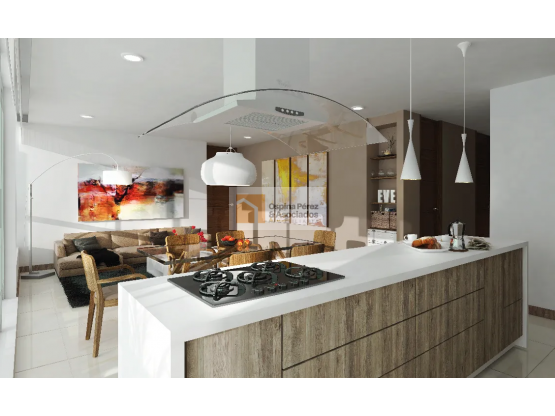 El apartamento cuenta con sala, comedor, cocina integral abierta, balcón con vista a la ciudad, despensa, zona de ropa, cuarto de servicio con baño, estudio y estar de tv, dos habitaciones con closet y baño cada una, principal con balcón y espacio para aire acondicionado, baño y Vestier. lo entrega en marzo 2024.