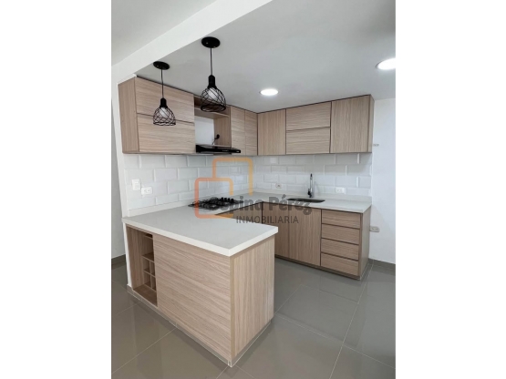 El apartamento consta de sala comedor con pisos en cerámica, cocina integral con extractor de olores, estudio, dos habitaciones con closet, la habitación principal con baño privado y vestier amplio, baño social, zona de oficios y balcón con vista interna.