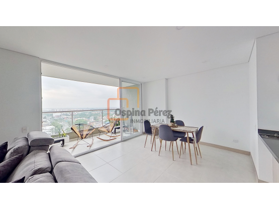 El apartamento consta de sala comedor, cocina tipo americana con campana, horno y lámparas led, balcón con vista externa, ventanales dobles que proporcionan excelente iluminación, dos habitaciones con closets y la principal con baño privado y vestier, baño social y zona de oficios